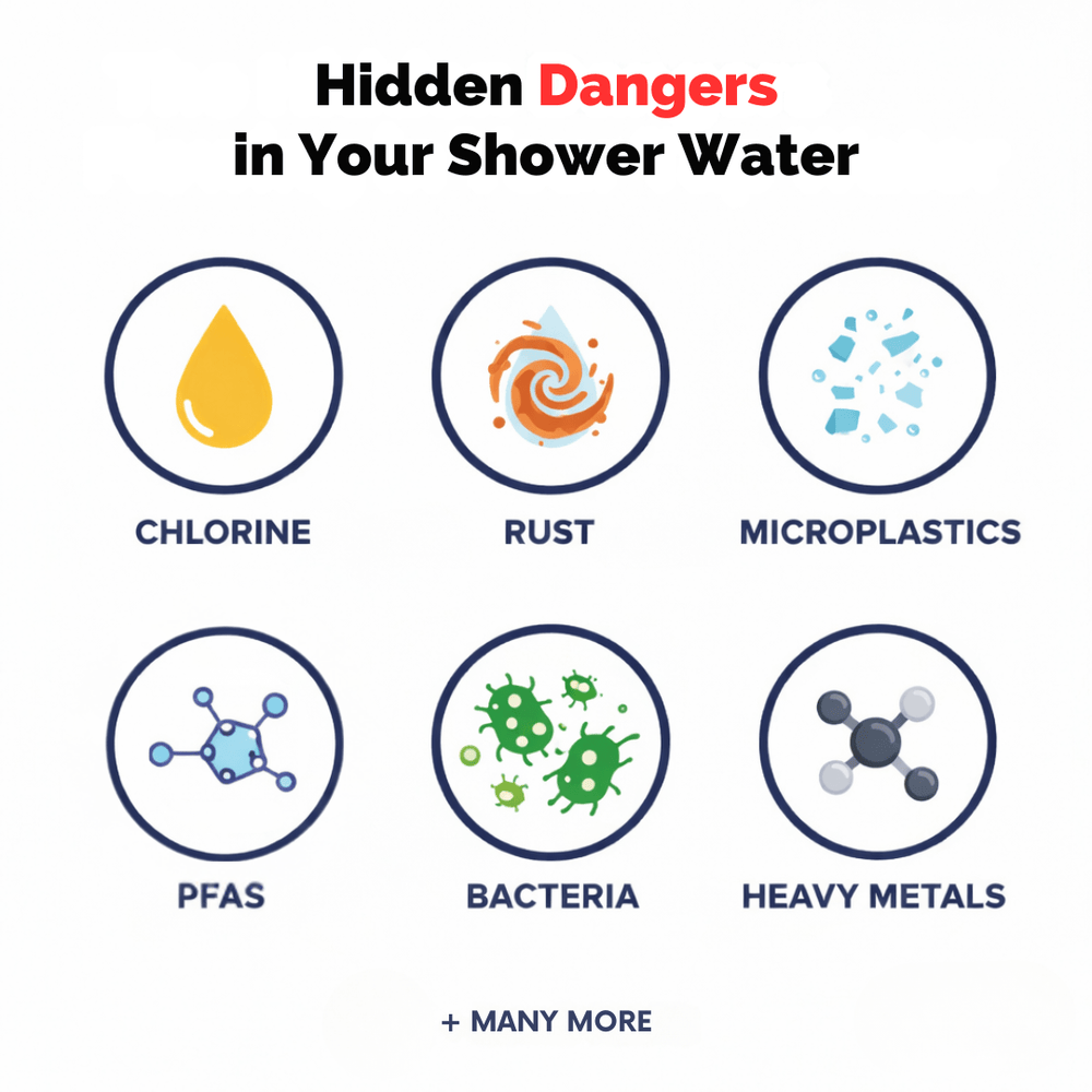 The Purity Co™ Shower Head filters out up to 95% of these toxins, giving you softer skin, stronger hair, and a healthier shower experience from day one.