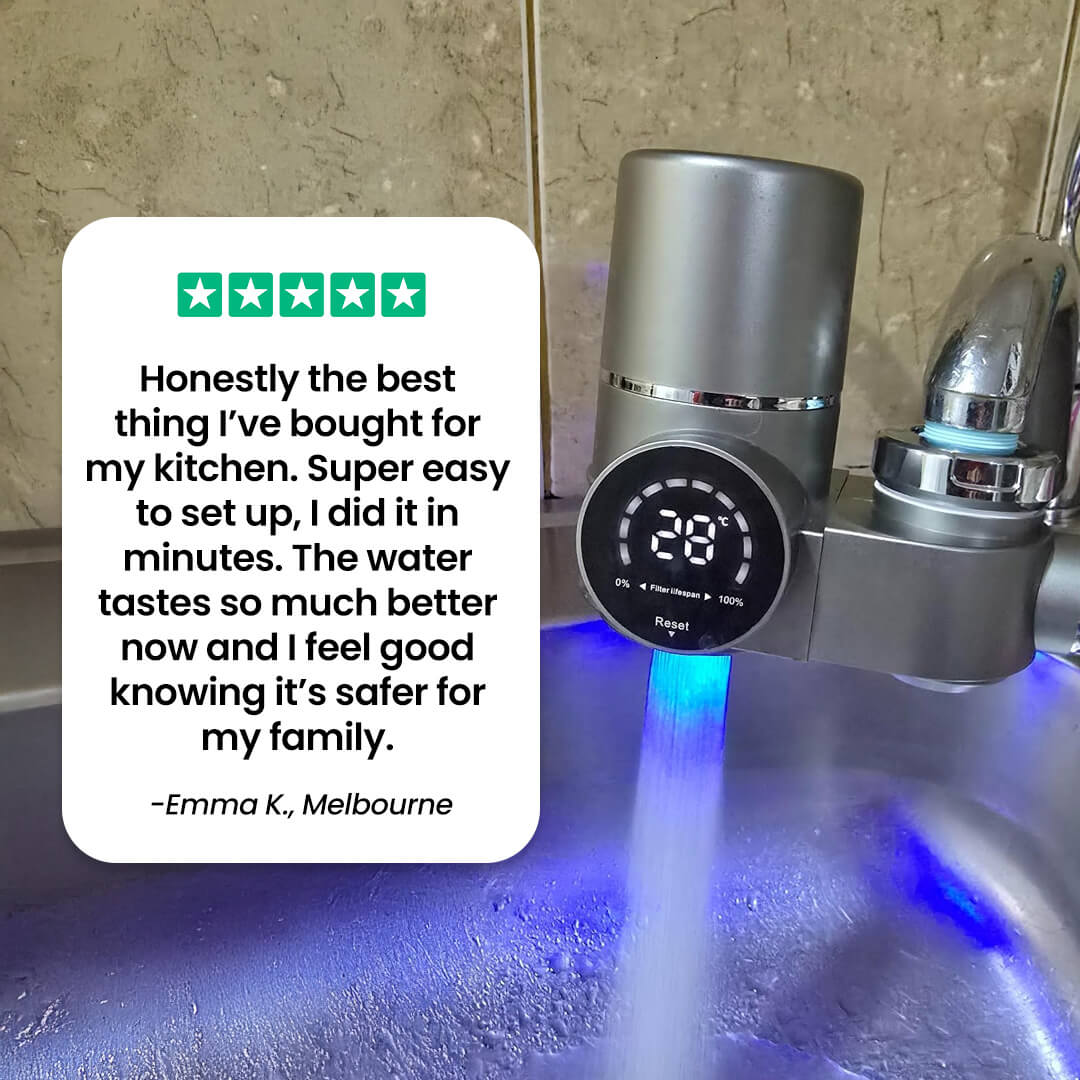 Our Purity Co™ Tap Filter is already trusted by over 5,000 Aussies who've made the switch to safer, better-tasting water. Buy yours today and start drinking cleaner, fresher water straight from your tap. With our 30-day money-back guarantee, you can try it completely risk-free.
